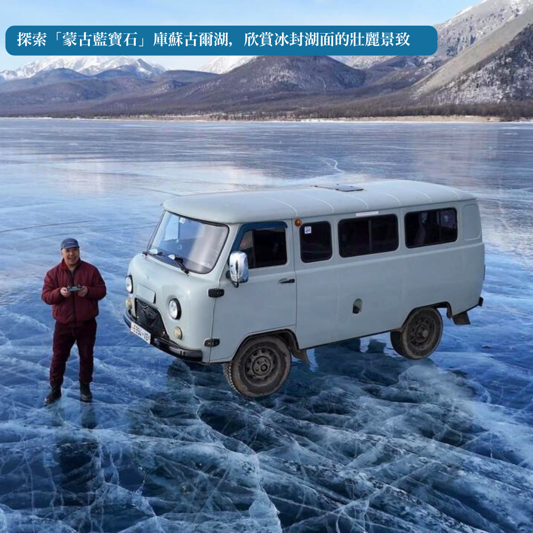 探索蒙古最大的淡水湖「蒙古藍寶石」庫蘇古爾湖,欣賞冰封湖面的壯麗景致,體驗冬季大自然的神奇魅力。