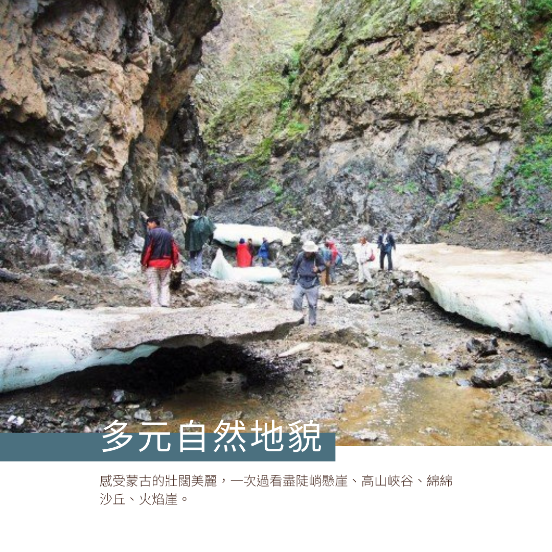 感受蒙古的壯闊美麗,一次過看盡陡峭懸崖、高山峽谷、綿綿沙丘、火焰崖。