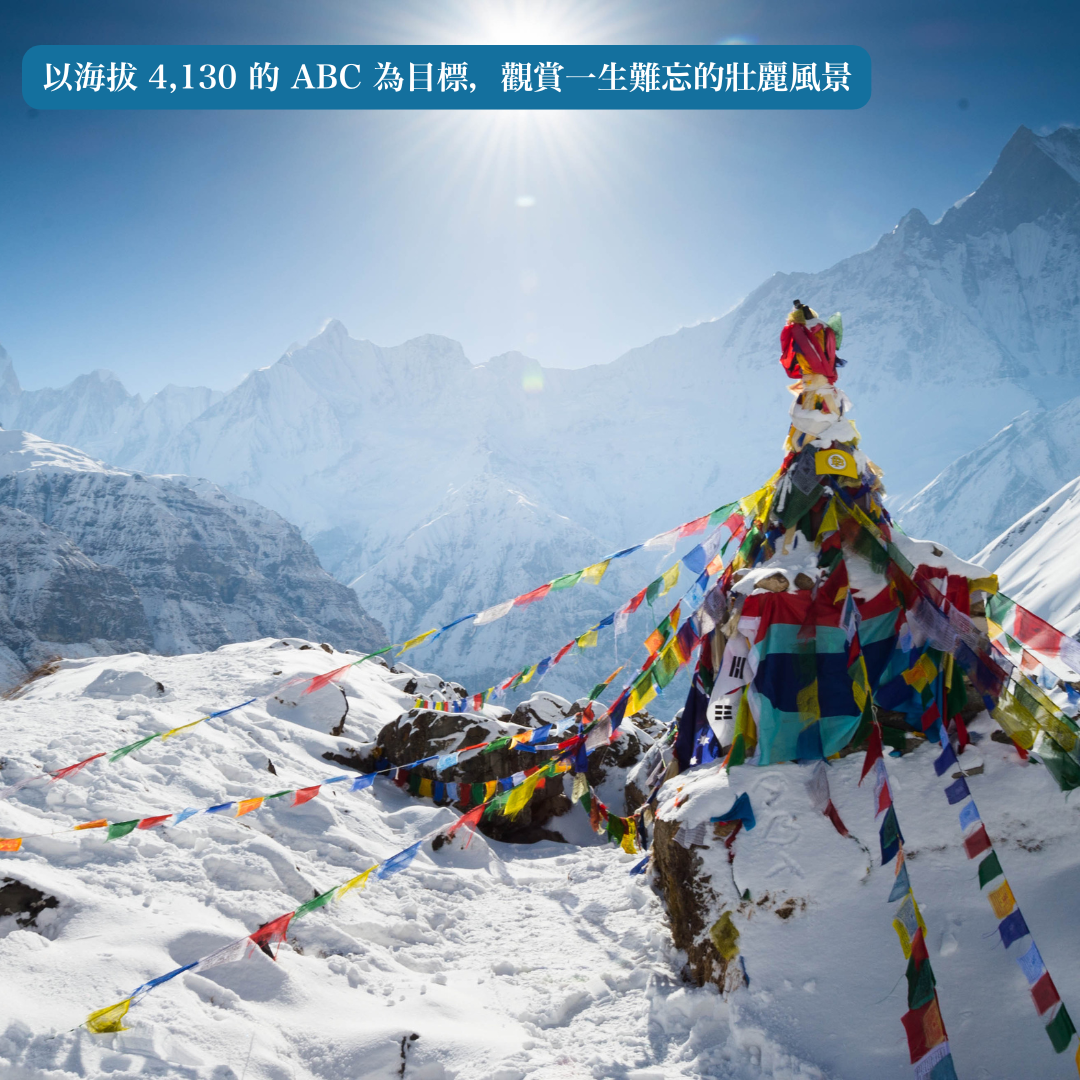 而與你同行的,還有曾多次到訪尼泊爾並完成ABC徒步的資深旅隨旅人,會與你一同努力,向宏偉的雪山進發。